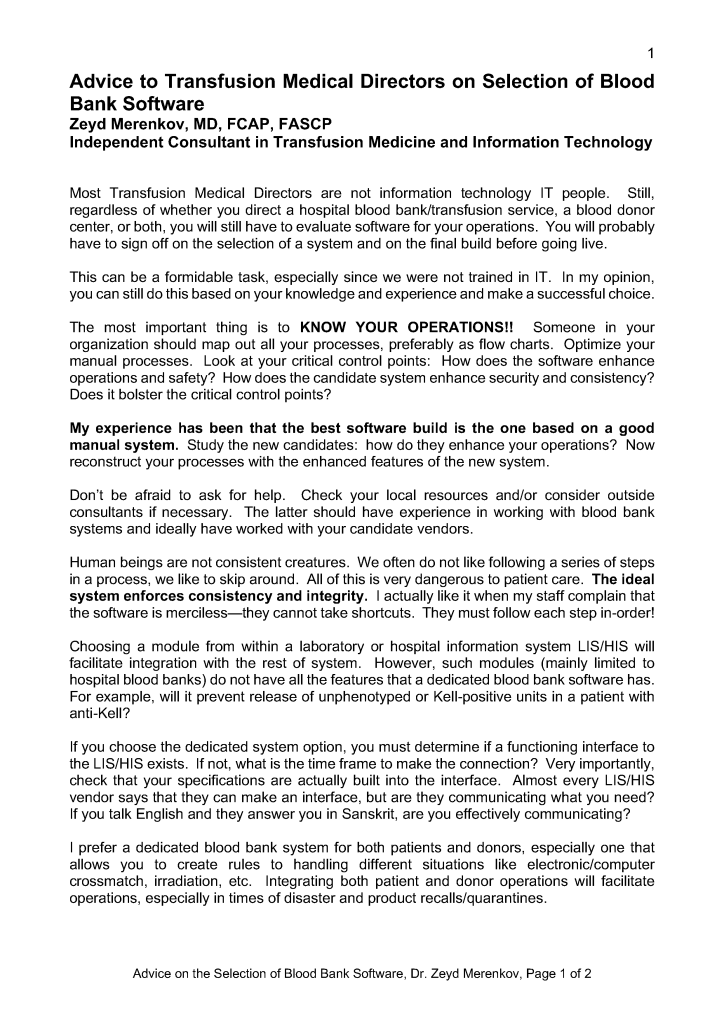 Transfusion Medicine, Blood Bank IT, Pathogen Inactivation, Plasma Fractionation, COVID-19 Convalescent Plasma Production