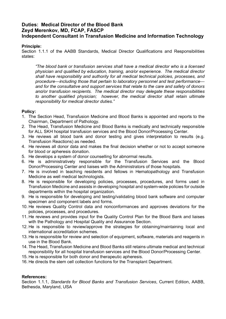 Accreditation / Administration Policy: Medical Director of the Blood Bank Image30th Sep 20241st Mar 2024 drzeyd Share this: Click to share on LinkedIn (Opens in new window) LinkedIn Click to share on X (Opens in new window) X Click to share on Facebook (Opens in new window) Facebook Like Loading... Related