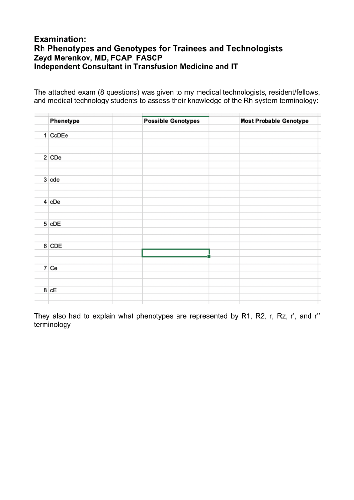 Donor / Patient / Teaching Exam: Rh Phenotypes and Genotypes Image23rd Oct 202424th Mar 2024 drzeyd Share this: Click to share on LinkedIn (Opens in new window) LinkedIn Click to share on X (Opens in new window) X Click to share on Facebook (Opens in new window) Facebook Like Loading... Related