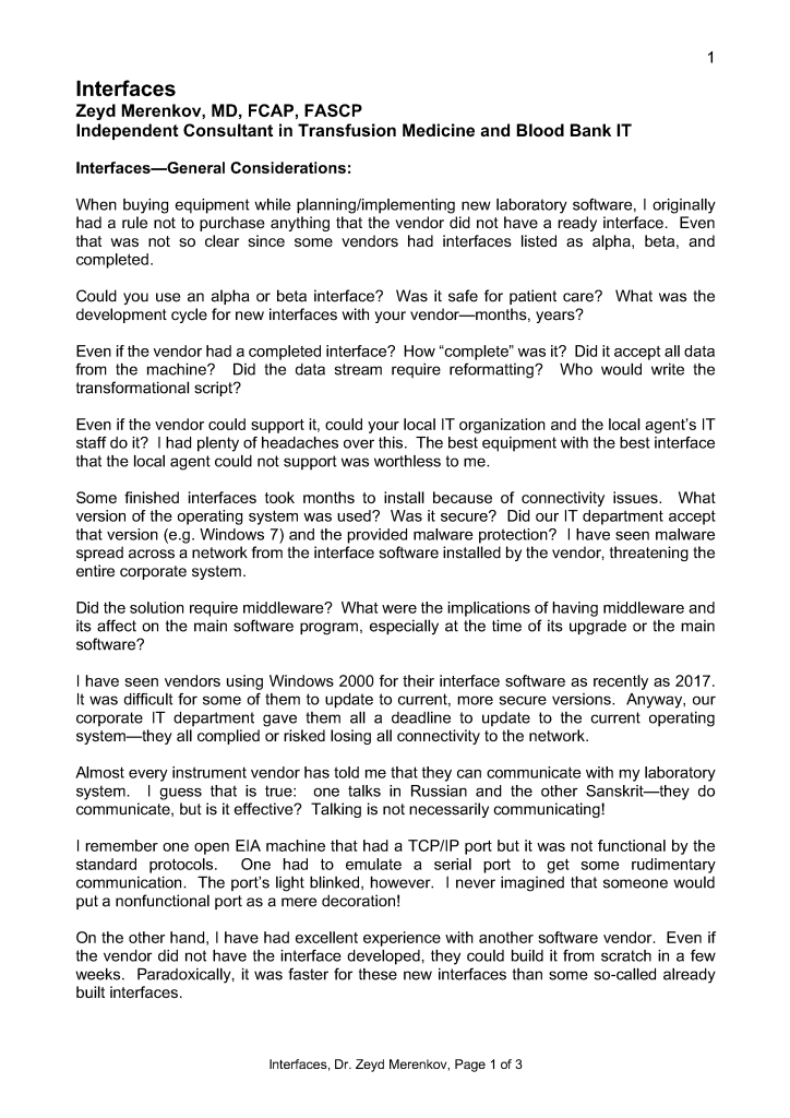 Specifications for the Blood Bank Software Hospital System Interface–Example