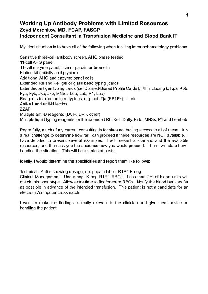 Patient / Teaching Introduction: Working Up Antibody Problems with Limited Resources Image15th Nov 202415th Apr 2024 drzeyd Share this: Click to share on LinkedIn (Opens in new window) LinkedIn Click to share on X (Opens in new window) X Click to share on Facebook (Opens in new window) Facebook Like Loading... Related