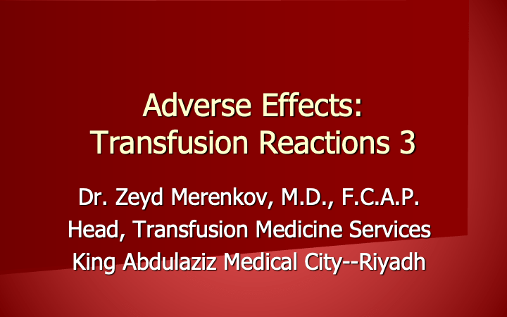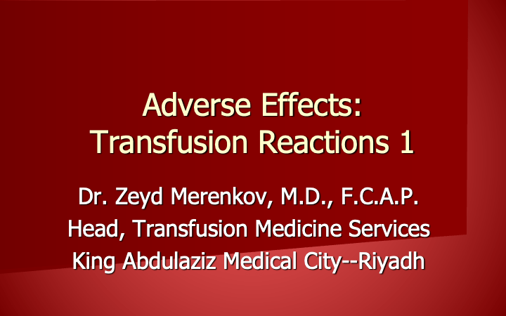 Adverse Effects of Transfusion 1 28th Jan 202530th Jun 2024 drzeyd This is an updated version of a lecture for a medical technologist audience on transfusion reactions.