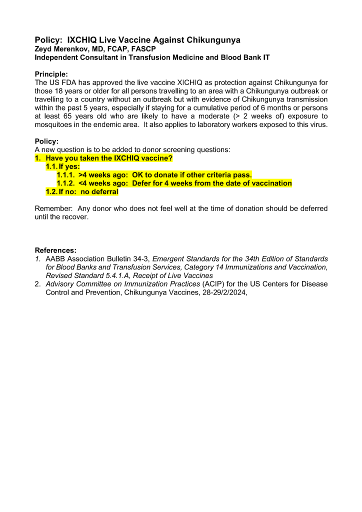 Blood Bank IT / Donor / Teaching IXCHIQ Chikungunya Vaccine Deferral Image25th Feb 20258th Aug 2024 drzeyd Share this: Click to share on LinkedIn (Opens in new window) LinkedIn Click to share on X (Opens in new window) X Click to share on Facebook (Opens in new window) Facebook Like Loading... Related