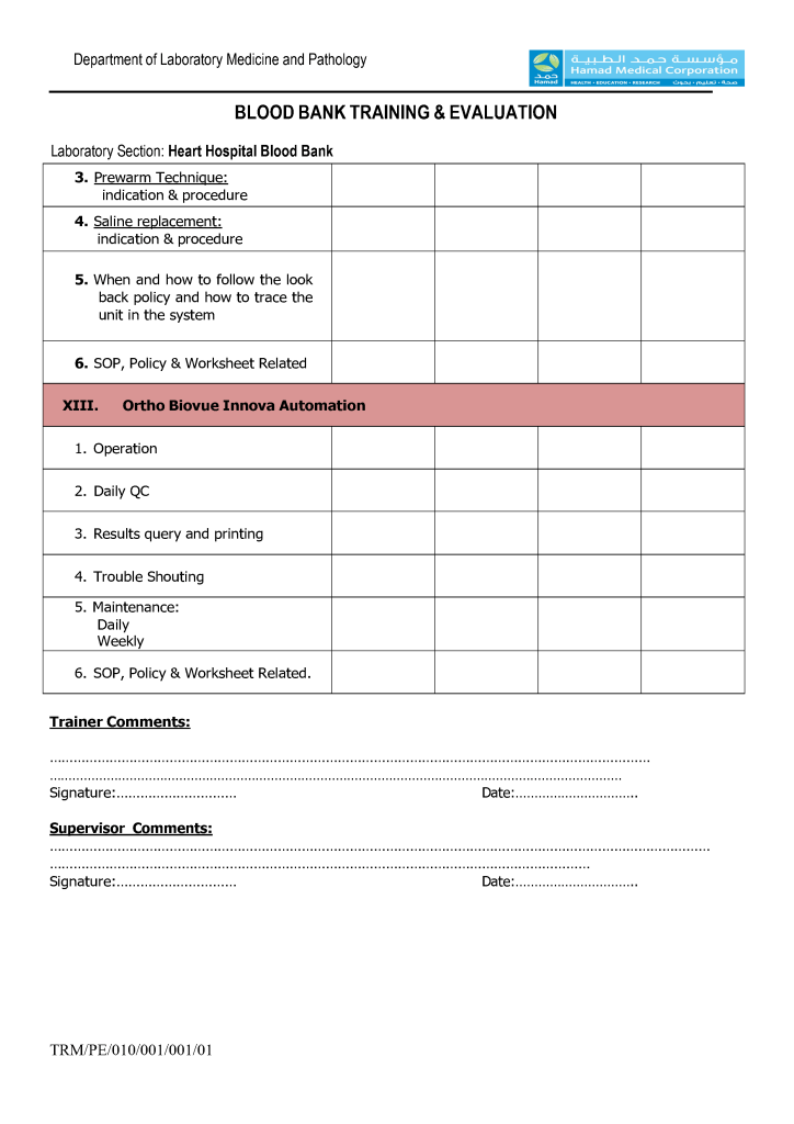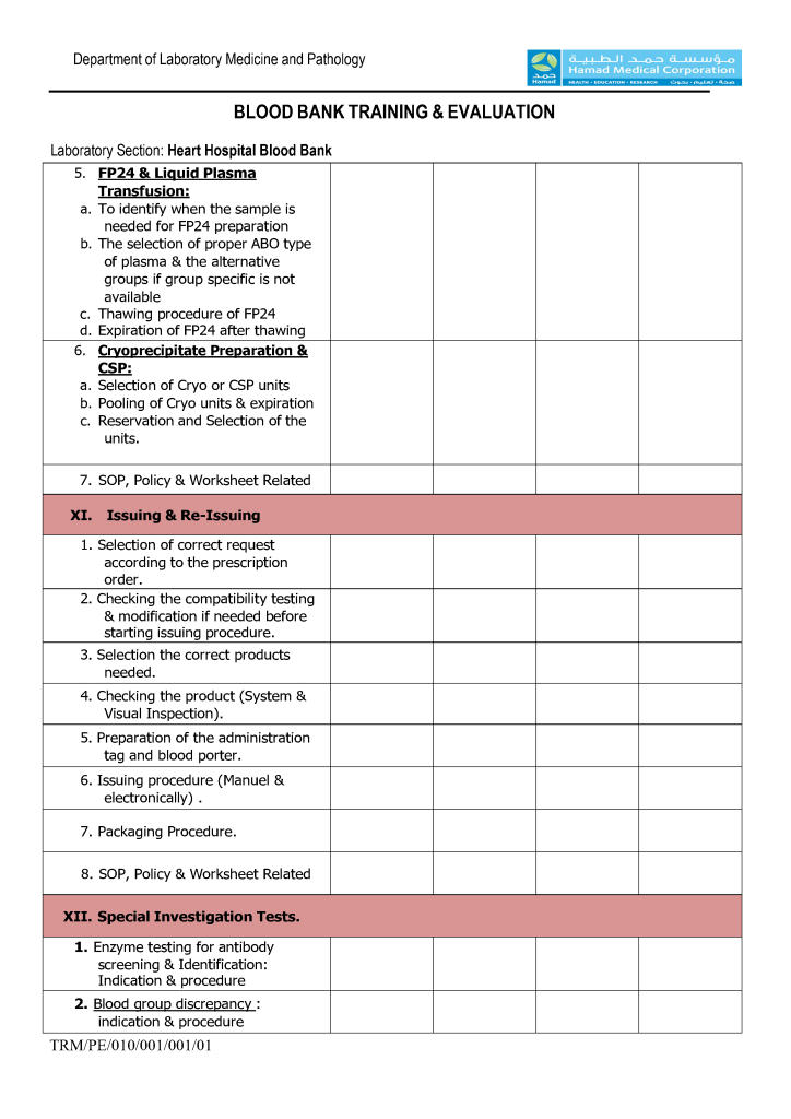 Competency Assessment: Transfusion Service