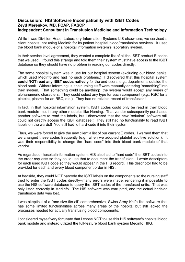 Blood Bank IT / Donor / Labels HIS System Incompatibility with ISBT Labels Image27th Apr 20256th Oct 2024 drzeyd Share this: Click to share on LinkedIn (Opens in new window) LinkedIn Click to share on X (Opens in new window) X Click to share on Facebook (Opens in new window) Facebook Like Loading... Related