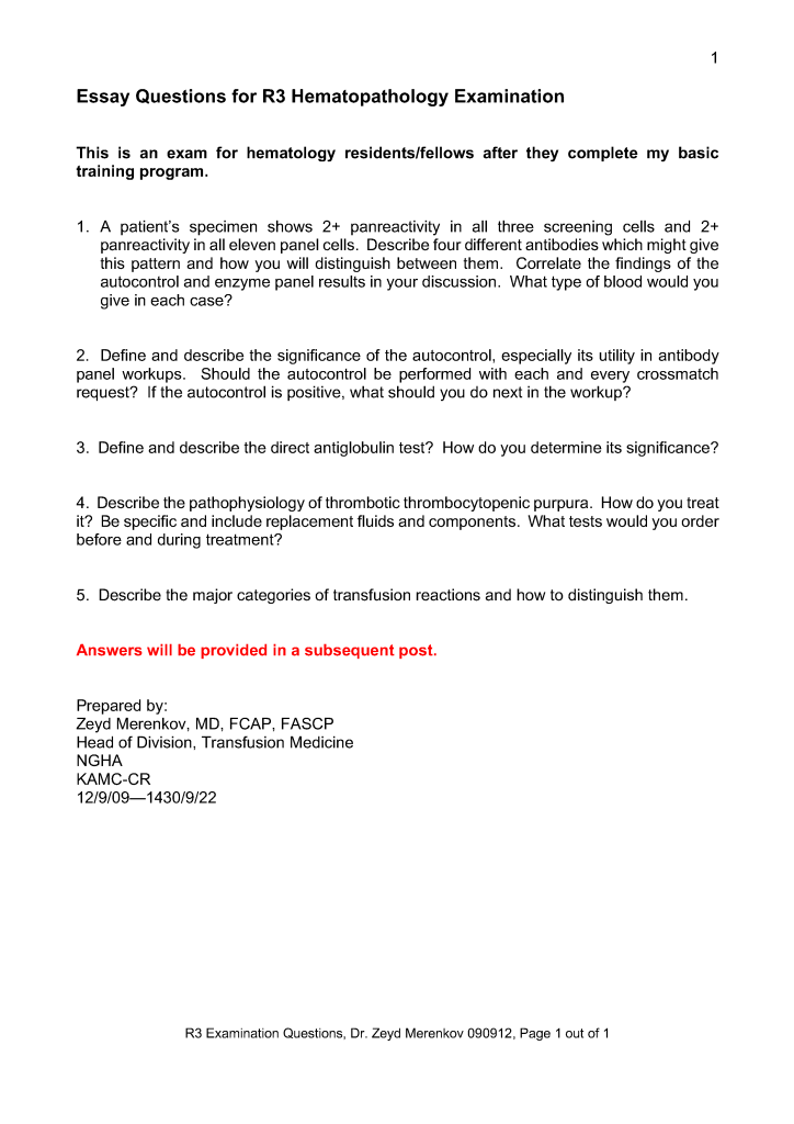 Accreditation / Teaching / Transfusion Medicine Hematology Resident R3 Transfusion Examination Image1st May 202511th Oct 2024 drzeyd Share this: Click to share on LinkedIn (Opens in new window) LinkedIn Click to share on X (Opens in new window) X Click to share on Facebook (Opens in new window) Facebook Like Loading... Related