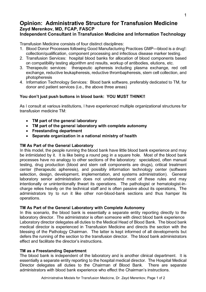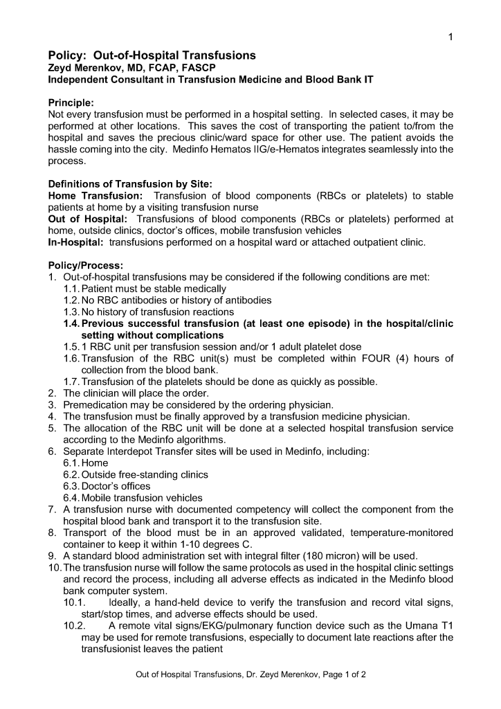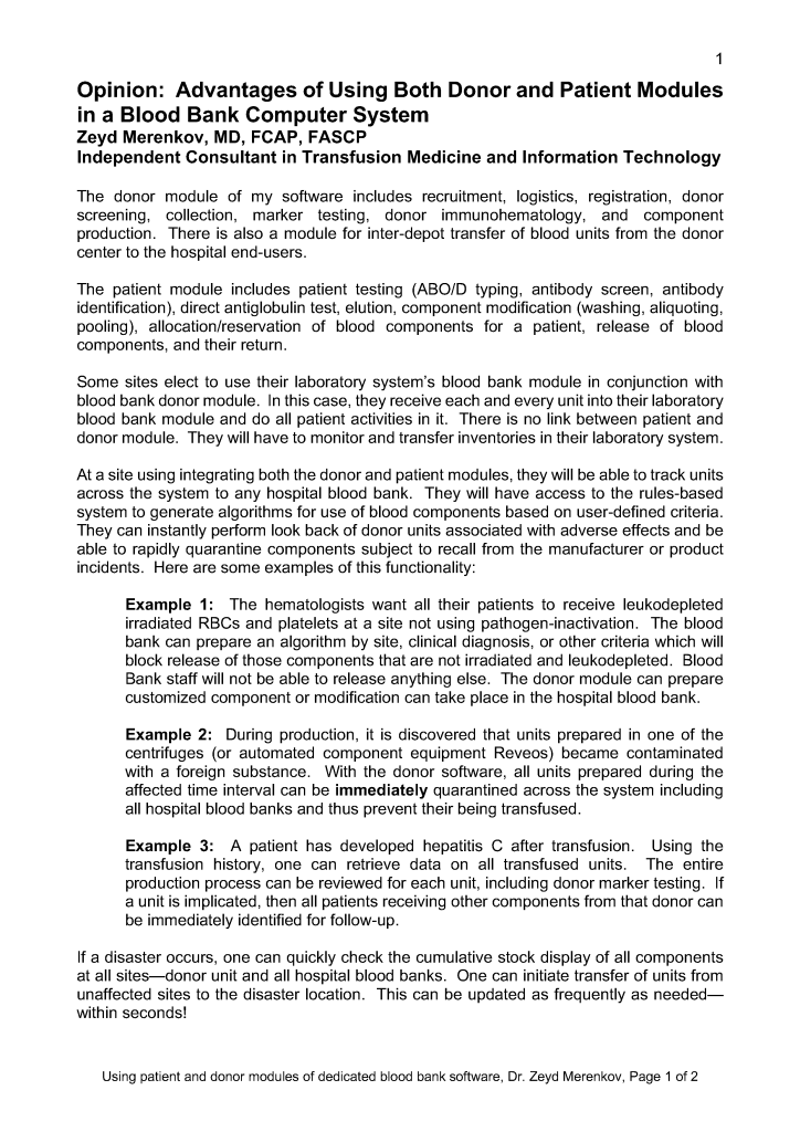 Transfusion Medicine, Blood Bank IT, Pathogen Inactivation, Plasma Fractionation, COVID-19 Convalescent Plasma Production