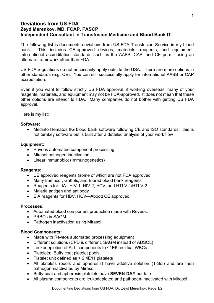 Deviations from US FDA