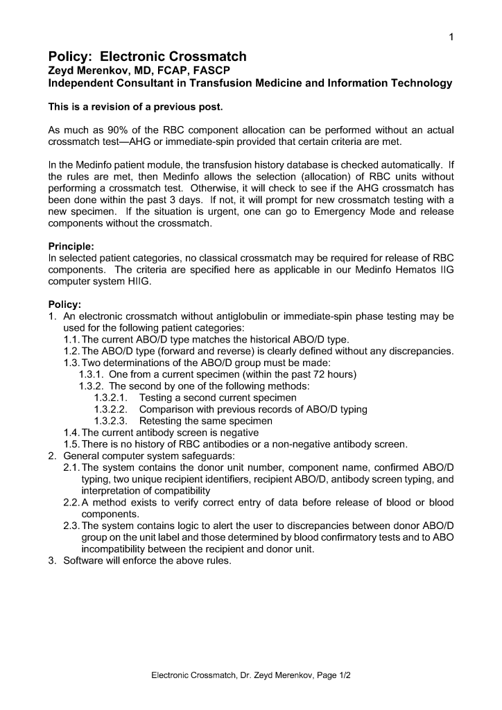 Electronic Crossmatch
