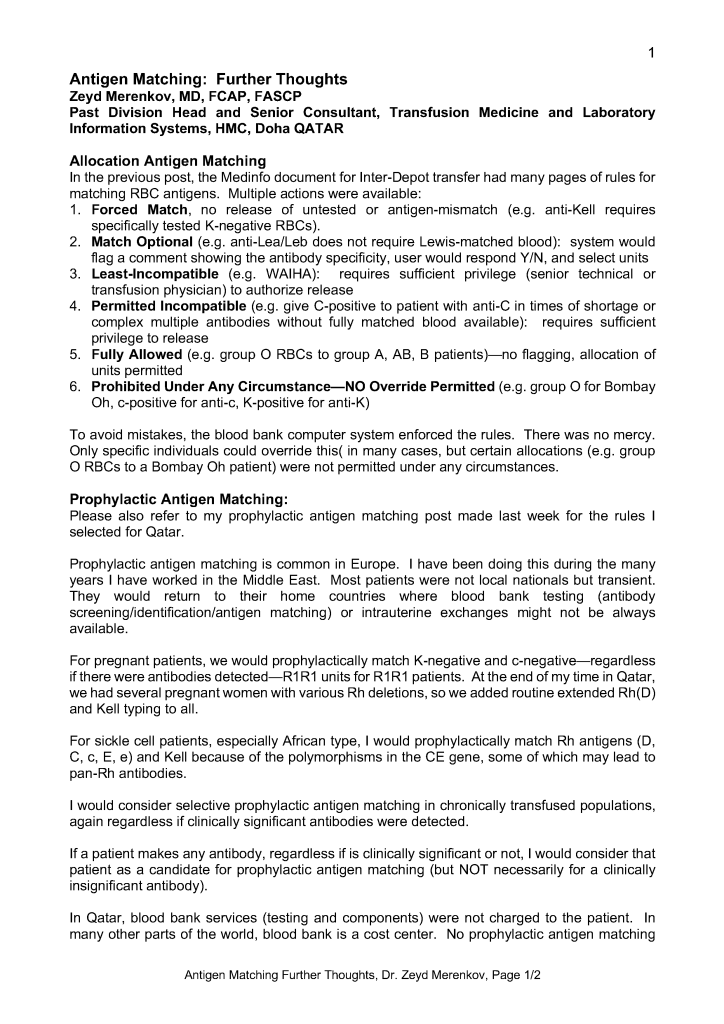 Antigen Matching