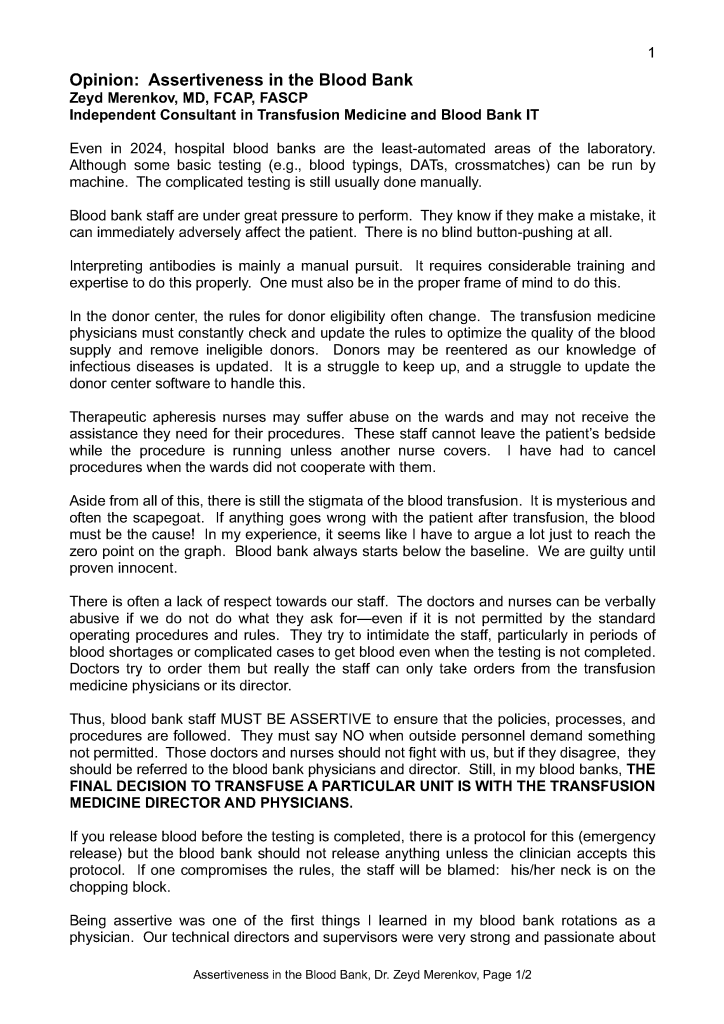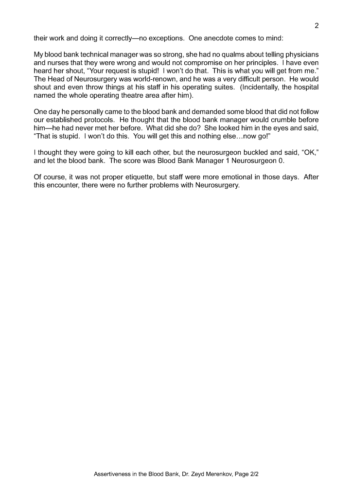 Assertiveness in the Blood Bank
