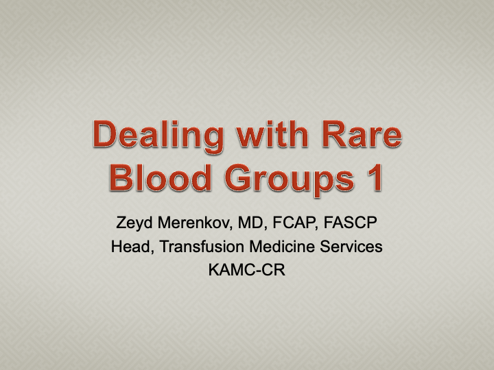 Dealing with Rare Blood Groups MOH Lecture 1