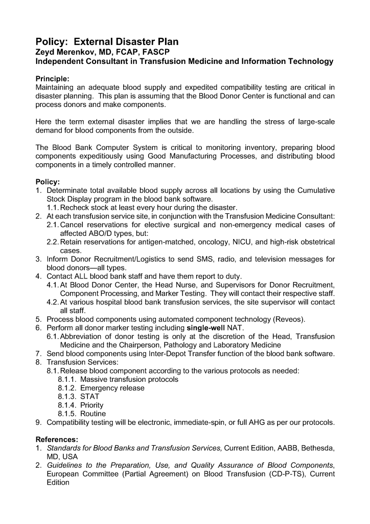 Accreditation / Administration / Blood Bank IT / Donor / Patient / Patient Blood Management / Patient Blood Management / Teaching External Disaster Plan Image21st Jun 202525th Nov 2024 drzeyd Share this: Click to share on LinkedIn (Opens in new window) LinkedIn Click to share on X (Opens in new window) X Click to share on Facebook (Opens in new window) Facebook Like Loading... Related