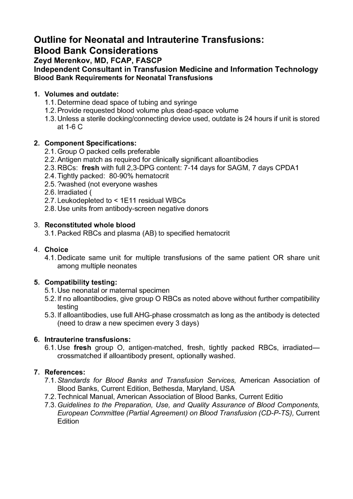Outline for Neonatal and Intrauterine Transfusions 23rd Jul 202527th Dec 2024 drzeyd I customize this outline for the local practices at the hospital in conjunction with the neonatologists.