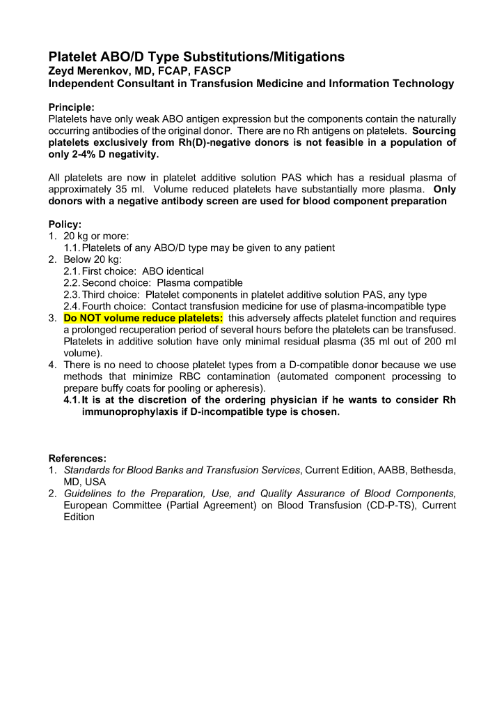 Platelet ABO-D Mitigations 25th Jul 202529th Dec 2024 drzeyd There is more flexibility when platelet additive solution is used since there is so little residual plasma!