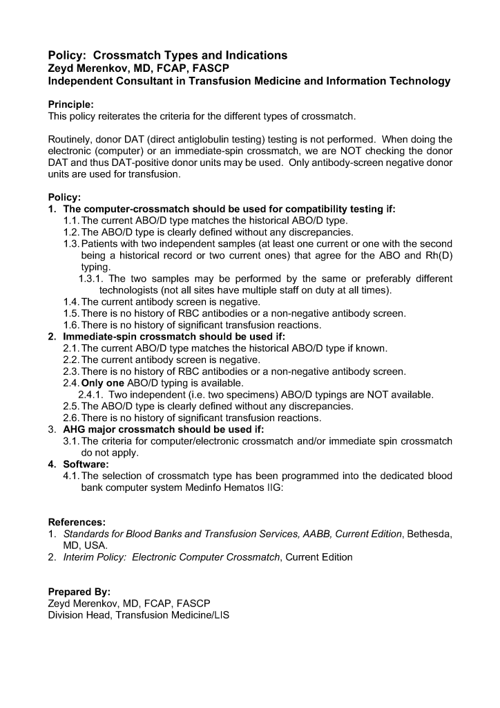 Administration / Blood Bank IT / Patient / Patient Blood Management / Patient Blood Management / Teaching Crossmatch Types and Indications Policy Image27th Aug 202526th Jan 2025 drzeyd Share this: Click to share on LinkedIn (Opens in new window) LinkedIn Click to share on X (Opens in new window) X Click to share on Facebook (Opens in new window) Facebook Like Loading... Related
