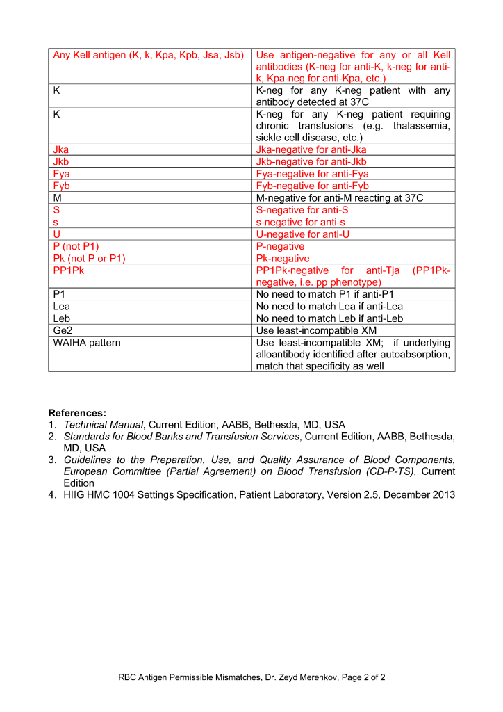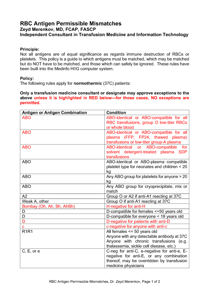 RBC Antigen Matching and Mismatching