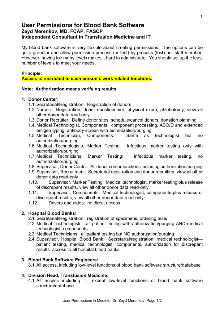 User Permissions in Blood Bank Software