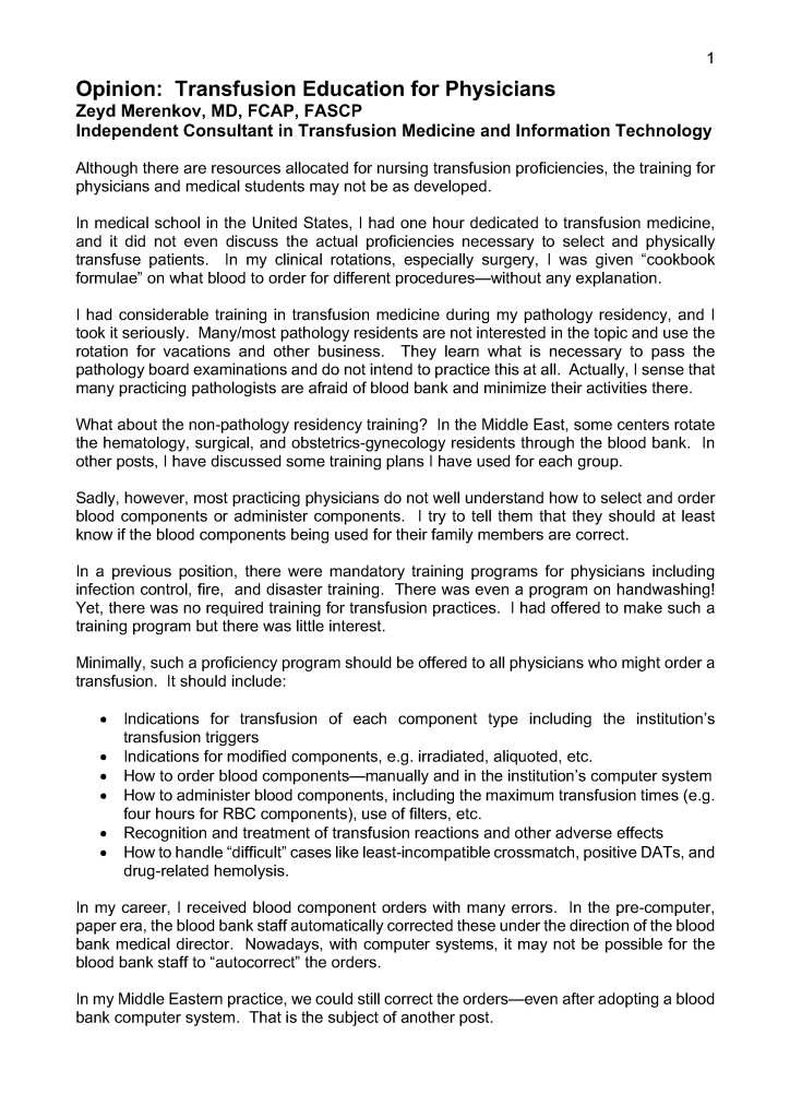Accreditation / Administration / Blood Bank IT / Patient Blood Management / Teaching Transfusion Medicine Education for Non-Blood Bank Physicians Image27th Sep 202523rd Feb 2025 drzeyd Share this: Click to share on LinkedIn (Opens in new window) LinkedIn Click to share on X (Opens in new window) X Click to share on Facebook (Opens in new window) Facebook Like Loading... Related