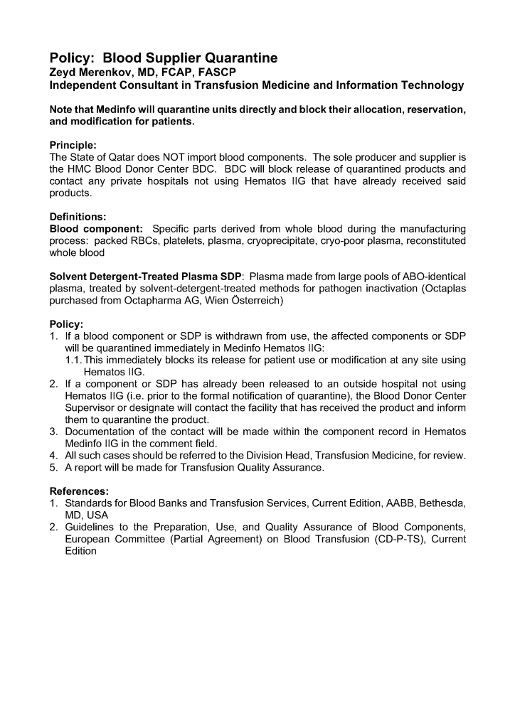 Accreditation / Apheresis / Blood Bank IT / Donor / Patient / Patient Blood Management / Patient Blood Management / Teaching Blood Supplier Quarantine Image9th Dec 202517th May 2025 drzeyd Share this: Click to share on LinkedIn (Opens in new window) LinkedIn Click to share on X (Opens in new window) X Click to share on Facebook (Opens in new window) Facebook Like Loading... Related