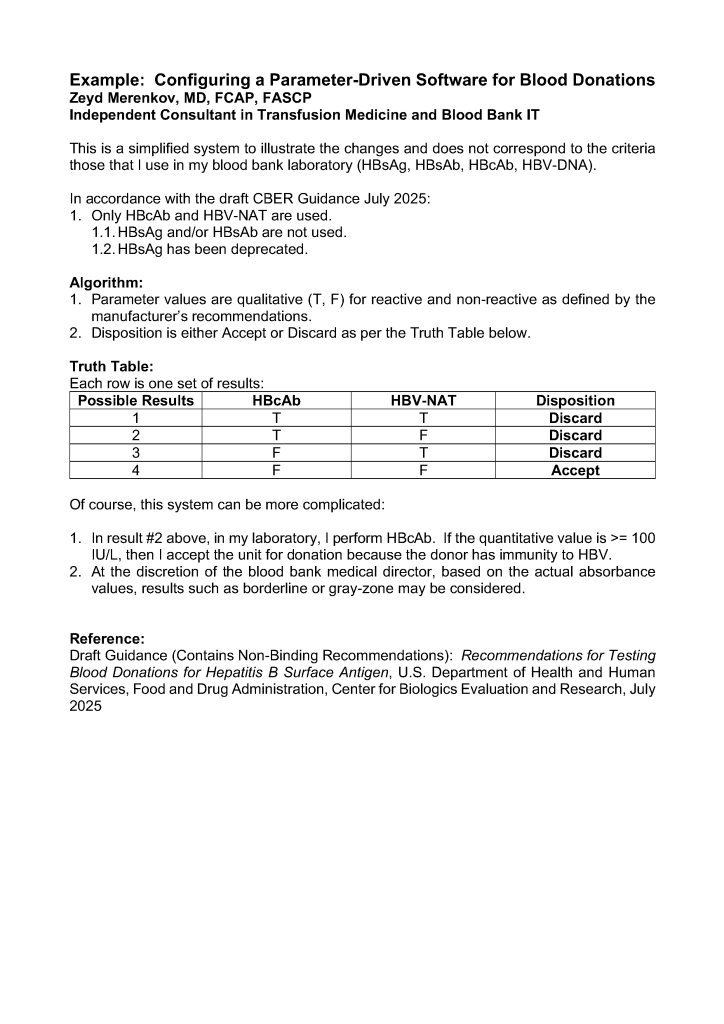 Blood Bank IT / Donor / Teaching Example: Configuring a Parameter-Driven Software for Blood Donation Qualification Image10th Feb 202623rd Jul 2025 drzeyd Share this: Share on LinkedIn (Opens in new window) LinkedIn Share on X (Opens in new window) X Share on Facebook (Opens in new window) Facebook Like Loading... Related