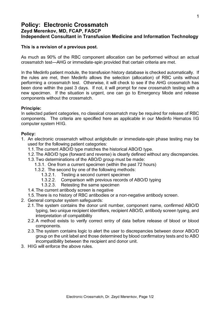Blood Bank IT / Patient / Patient Blood Management / Teaching Electronic Crossmatch Policy 13th Feb 202625th Jul 2025 drzeyd Share this: Share on LinkedIn (Opens in new window) LinkedIn Share on X (Opens in new window) X Share on Facebook (Opens in new window) Facebook Like Loading... Related