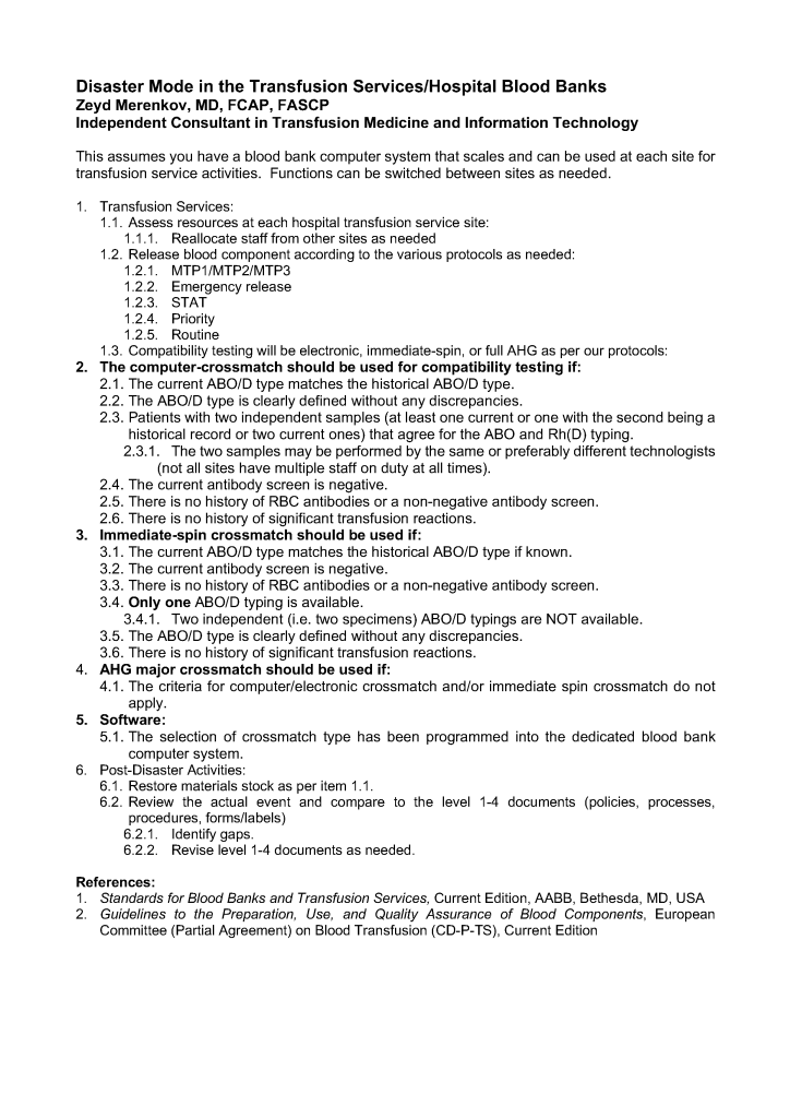 Accreditation / Administration / Blood Bank IT / Patient / Patient Blood Management / Patient Blood Management / Teaching Disaster Mode in the Transfusion Services Image6th Mar 202622nd Aug 2025 drzeyd Share this: Share on LinkedIn (Opens in new window) LinkedIn Share on X (Opens in new window) X Share on Facebook (Opens in new window) Facebook Like Loading... Related