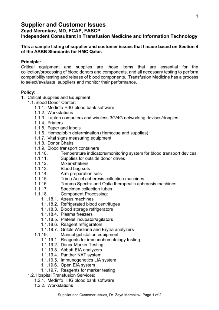 Supplier and Customer Issues