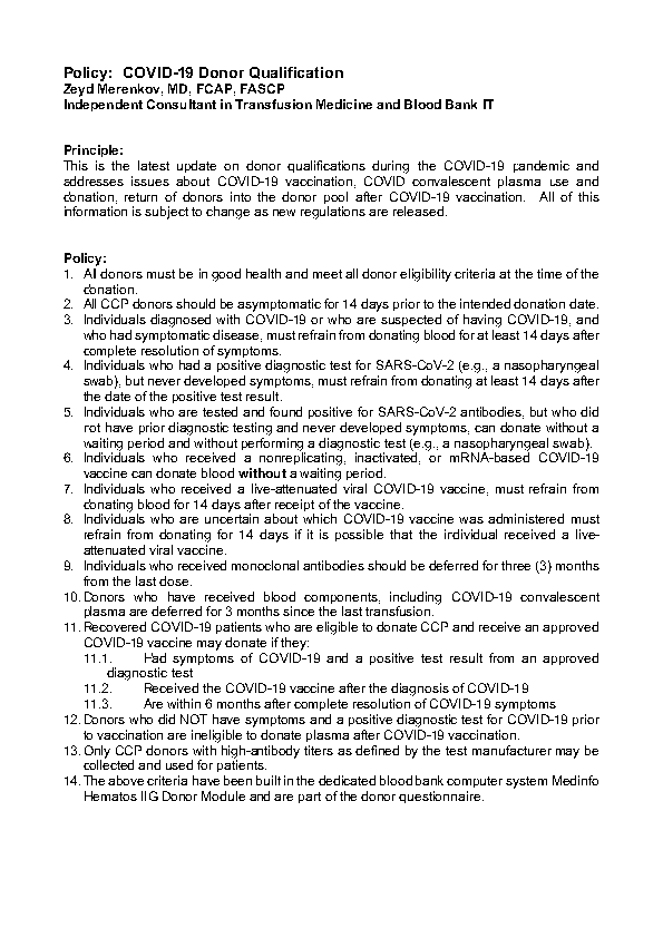 I am an independent consultant in Transfusion Medicine. Effective 16 April 2020, I am no longer associated with Hamad Medical Corporation or the State of Qatar.