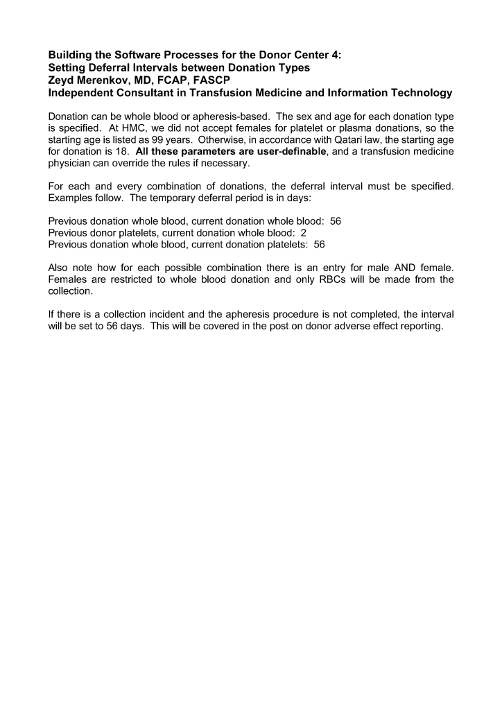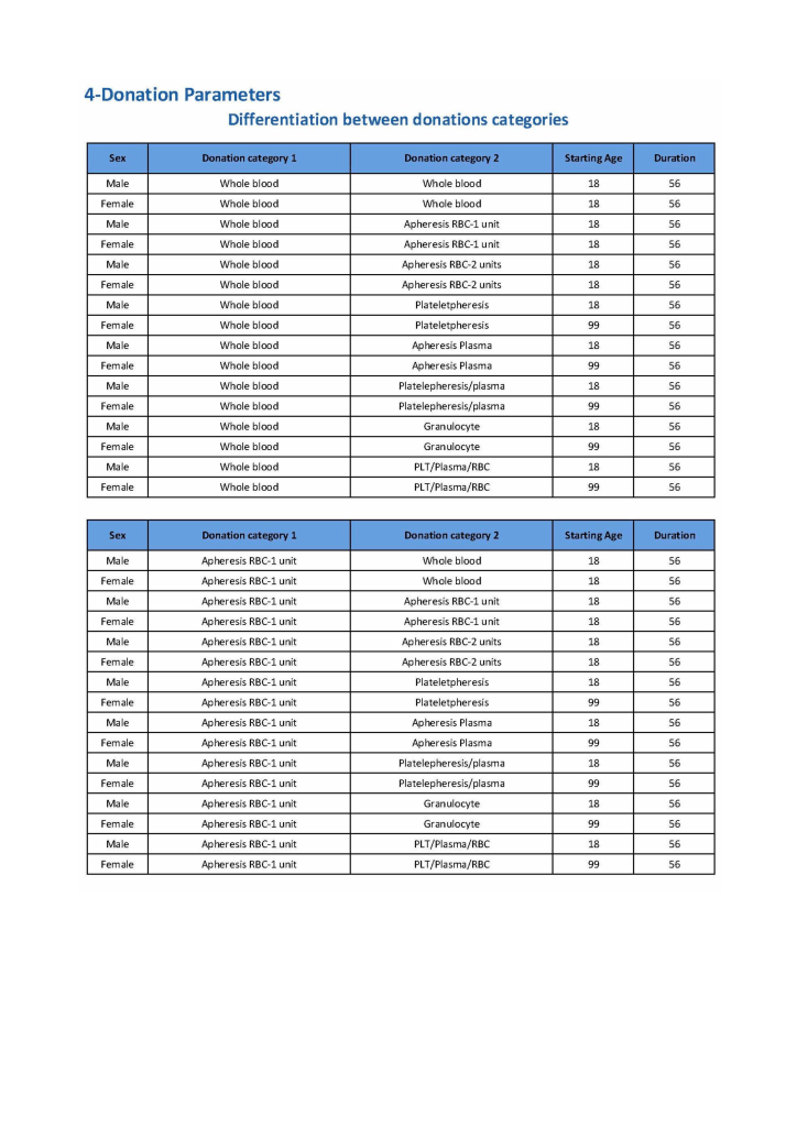 Accreditation Autologous Donation autologous transfusion Automated Blood Component Dispensing Machines Blood Bank Software Blood Supply Blood transport and Storage Body Piercings COVID-19 COVID-19 Plasma Donor Apheresis Donor Collection Donor Counseling Donor Immunohematology Donor Marker Testing Donor Processing donor recruitment Donor Transport General Laboratory Software Hijama Home Transfusions Immunohematology Interdepot Transfer Inventory ISBT Labels Job Descriptions Medinfo Hematos IIG Mirasol Out of Hospital Transfusions Planning Plasma Plasma Fractionation Pneumatic Tube Systems Polyagglutination Processes and Software Building Product Delivery Quality Assurance Remote Refrigerator Renal Transplantation Reveos Staffing stem cell transplant Tatoos Therapeutic Apheresis Therapeutic Phlebotomy Tissue Tissue Banking