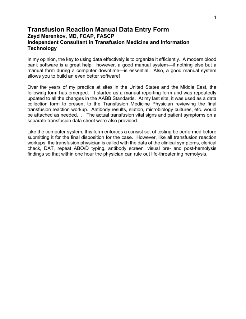 This form was developed based my experiences at several locations. It could serve as a data entry template for an electronic form.