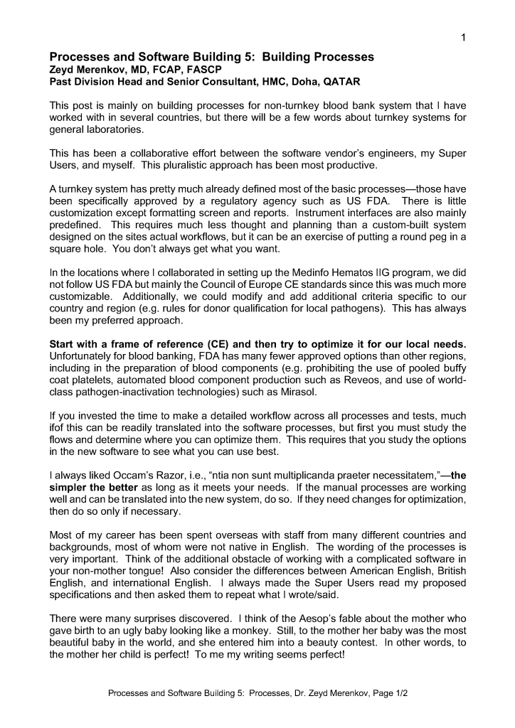 We had many problems with the hospital information system HIS interface to Medinfo including inability to directly read ISBT codes and more recently, inability to report multiple antibody simultaneously after a “feature update.” This regression error meant that doctors could not see the proper antibody results in the HIS. Everyone had to rely on the blood bank system to see the actual results. This was another reason that I kept the blood bank system separate from the HIS: the HIS database was corrupted for blood bank results. The only accurate database was the blood bank’s system. Regretfully, this data was never restored to the HIS system.