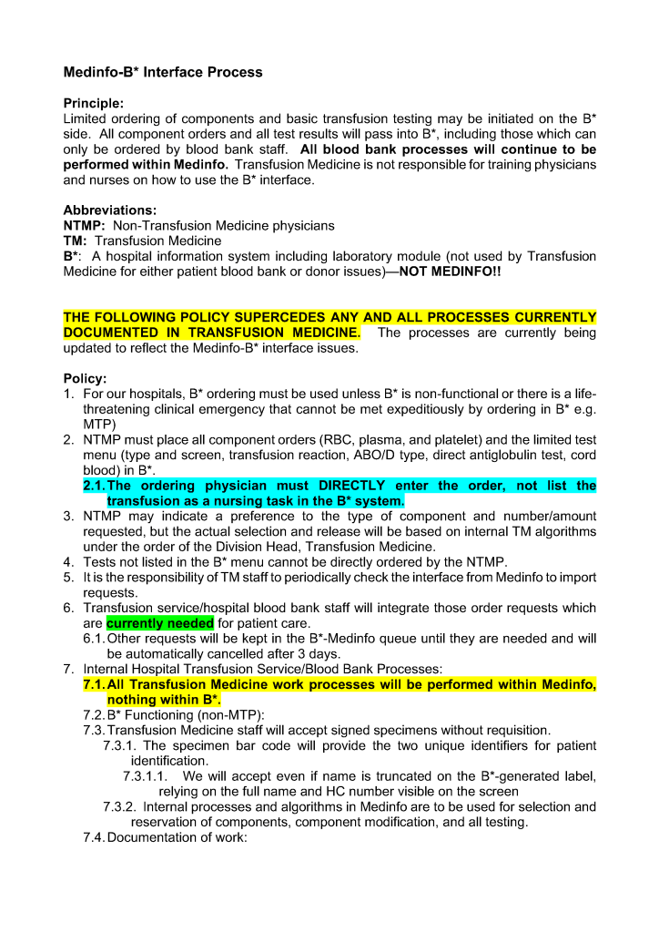 Note: In the following document the B* interface refers to the HIS system.