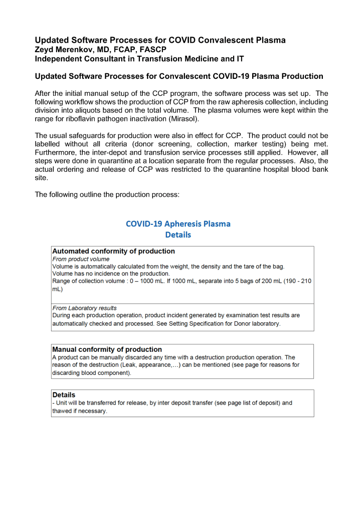 Transfusion Medicine, Blood Bank IT, Pathogen Inactivation, Plasma Fractionation, COVID-19 Convalescent Plasma Production