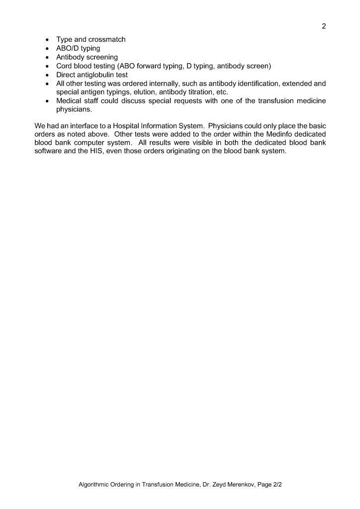 Detailed discussion of Medinfo processes for all blood bank donor and patient services