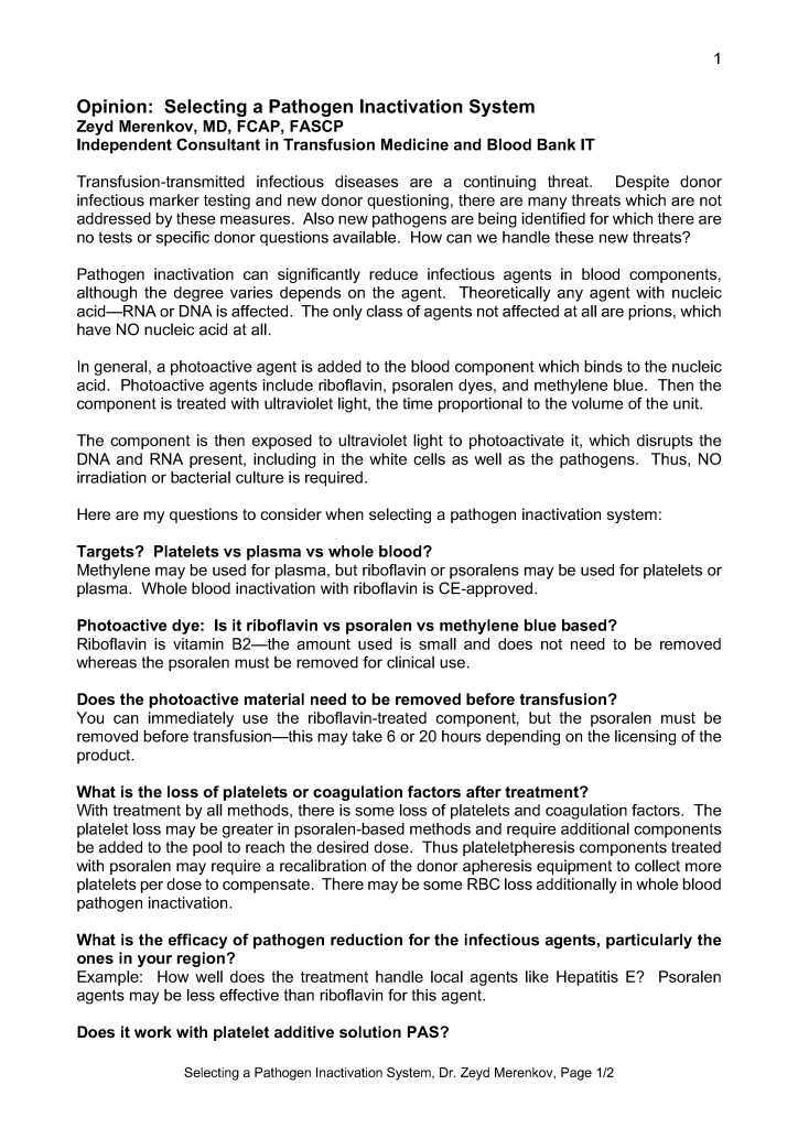 Transfusion Medicine, Blood Bank IT, Pathogen Inactivation, Plasma Fractionation, COVID-19 Convalescent Plasma Production