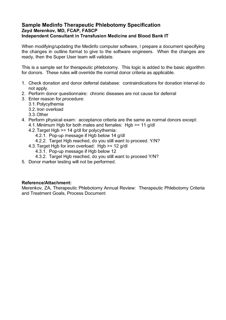 Sample Medinfo Algorithm for Therapeutic Phlebotomy